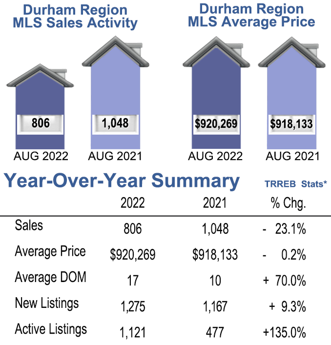 August 2022- Durham Region Home Sales, Year over Year Comparison