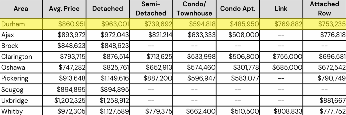 August 2025- Durham Region All Home Types Sales Stats- Average Price