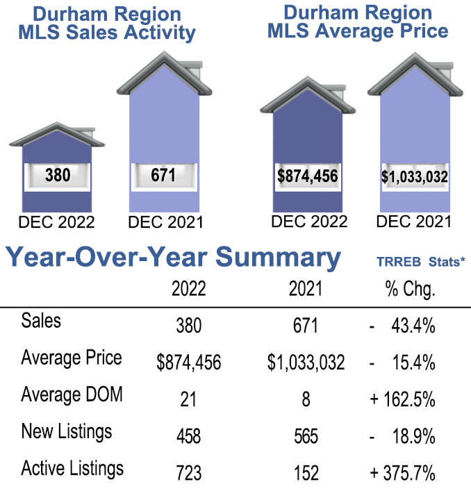 December 2022- Durham Region Home Sales, Year over Year Comparison