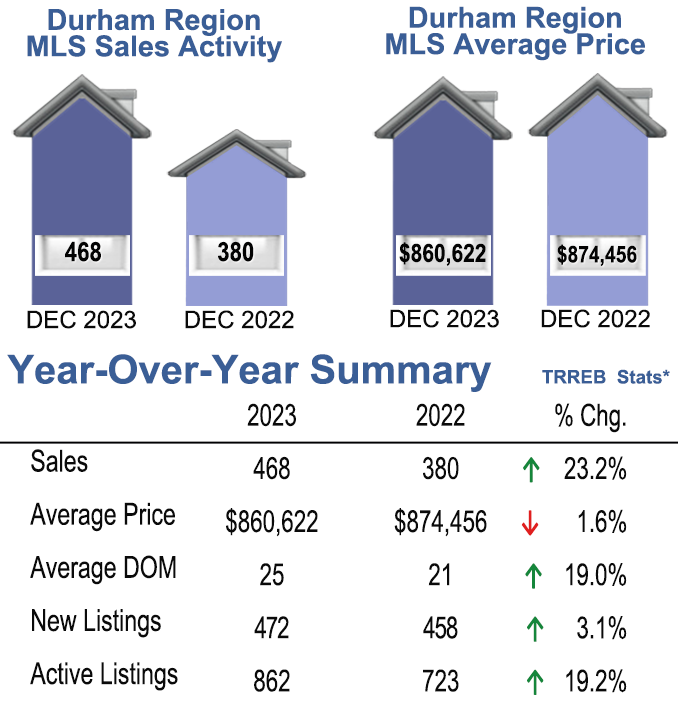 December 2023- Durham Region Home Sales Stats-Year Over Year- Average Price