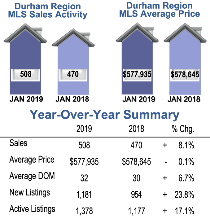 Durham Region Home Sales January, Year-Over-Year Comparison