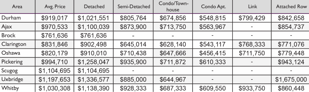 February 2024- Durham Region All Home Types Sales Stats- Average Price