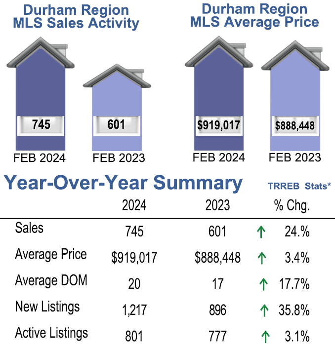 February 2024- Durham Region Home Sales Stats-Year Over Year- Average Price