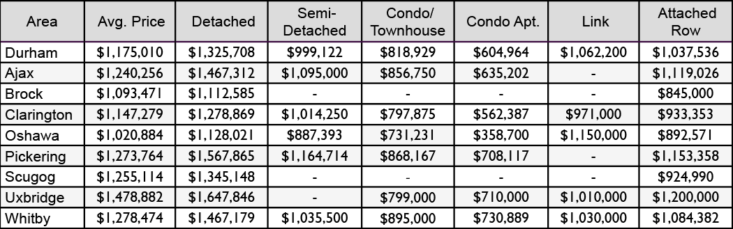 January 2022- Durham Region Home Sales Stats- Average Price