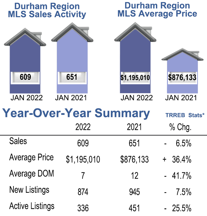 January 2022- Durham Region Home Sales, Year over Year Comparison