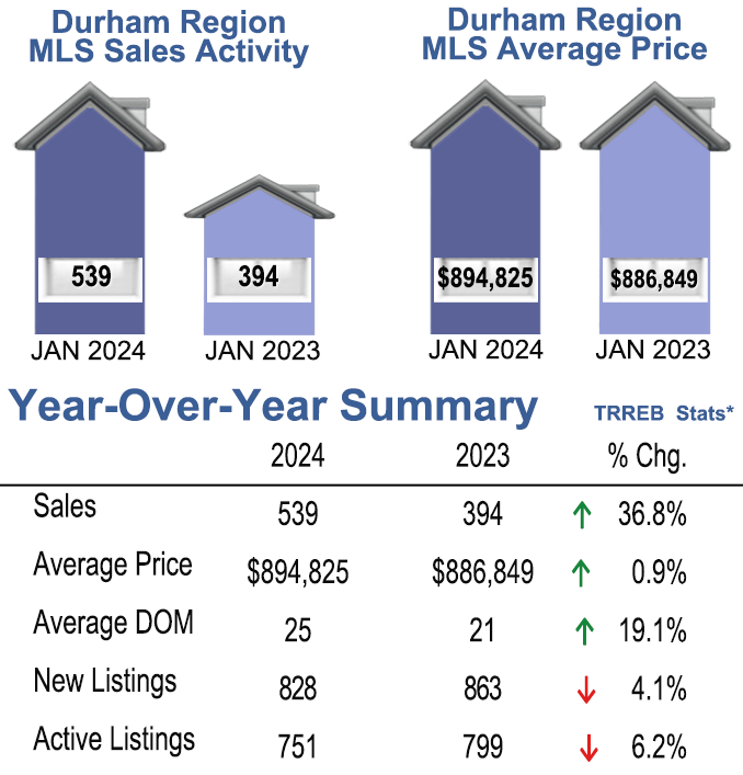January 2024- Durham Region Home Sales Stats-Year Over Year- Average Price