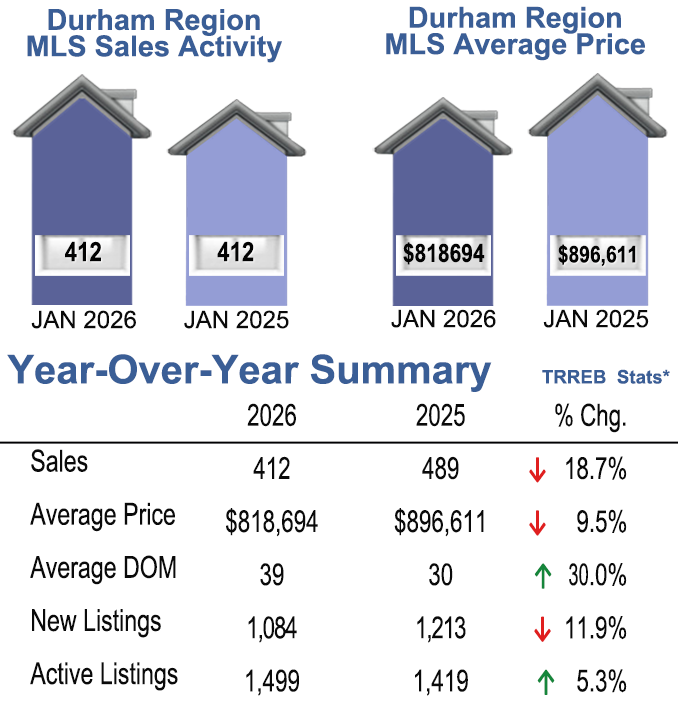January 2026 Durham Region Sales Stats, Year Over Year Summary