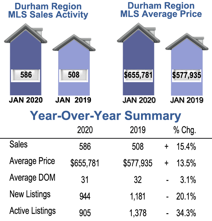JANUARY- Durham Region Home Sales, Year over Year Comparison