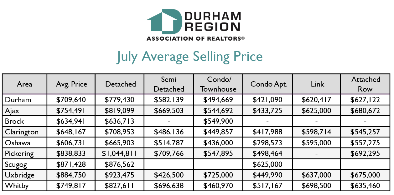 JULY 2020 Durham Region Home Sales Stats- Average Price