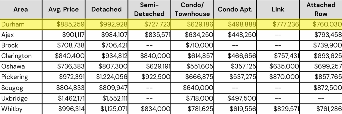 July 2025- Durham Region All Home Types Sales Stats- Average Price