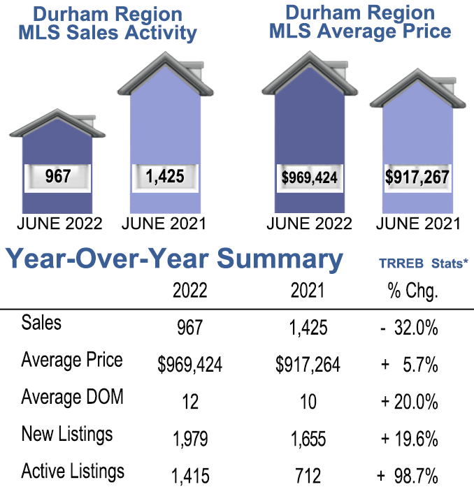 June 2022- Durham Region Home Sales, Year over Year Comparison