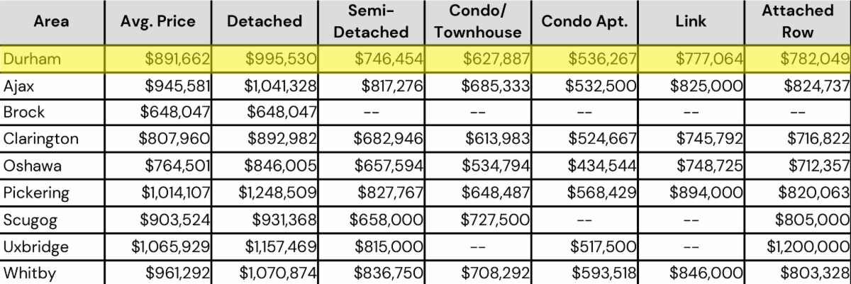 June 2025- Durham Region All Home Types Sales Stats- Average Price