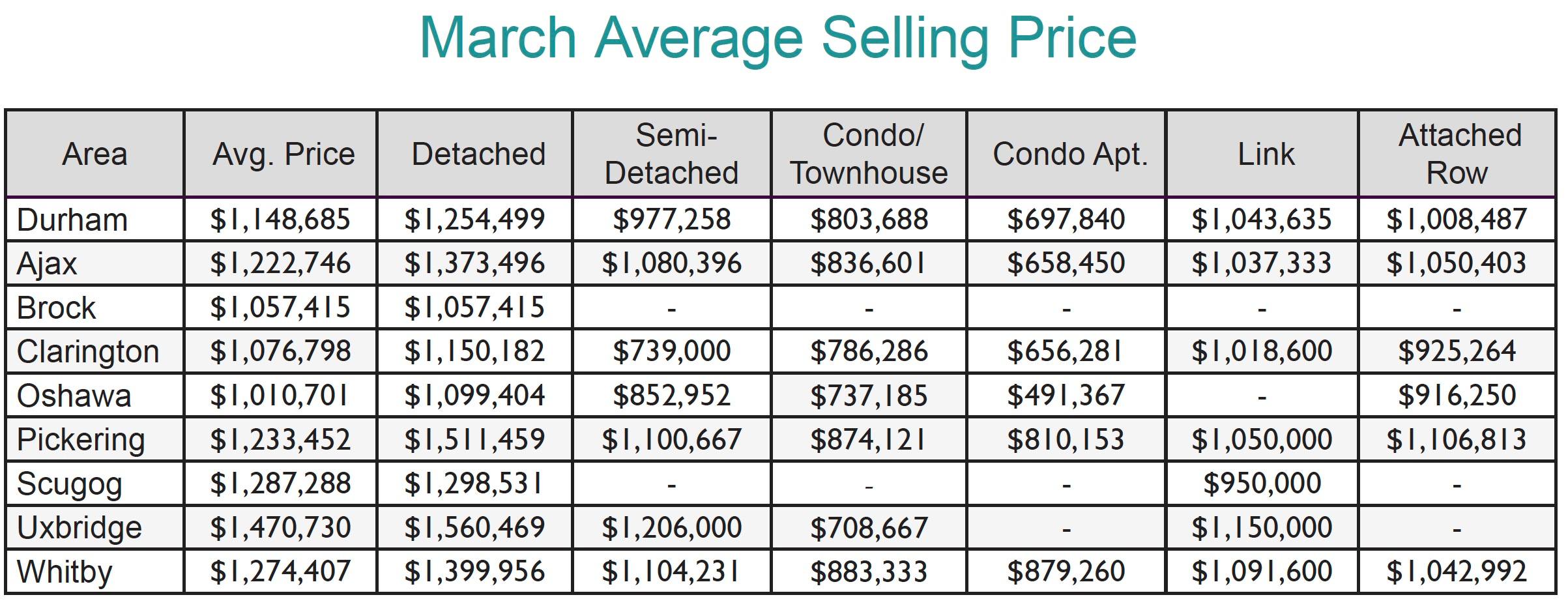 March 2022- Durham Region Home Sales Stats- Average Price
