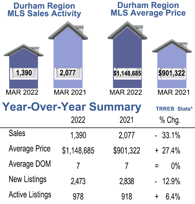 March 2022- Durham Region Home Sales, Year over Year Comparison