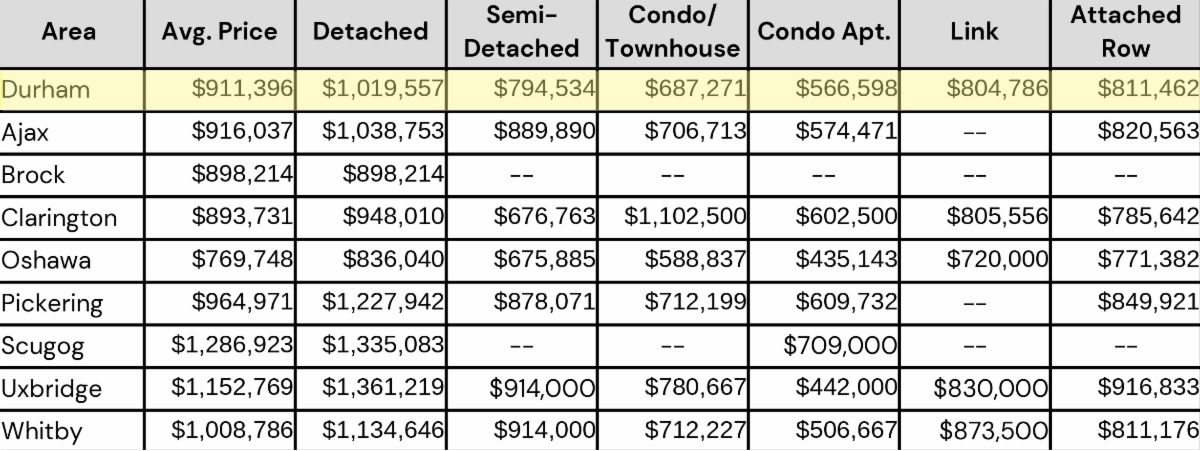 March 2025- Durham Region All Home Types Sales Stats- Average Price