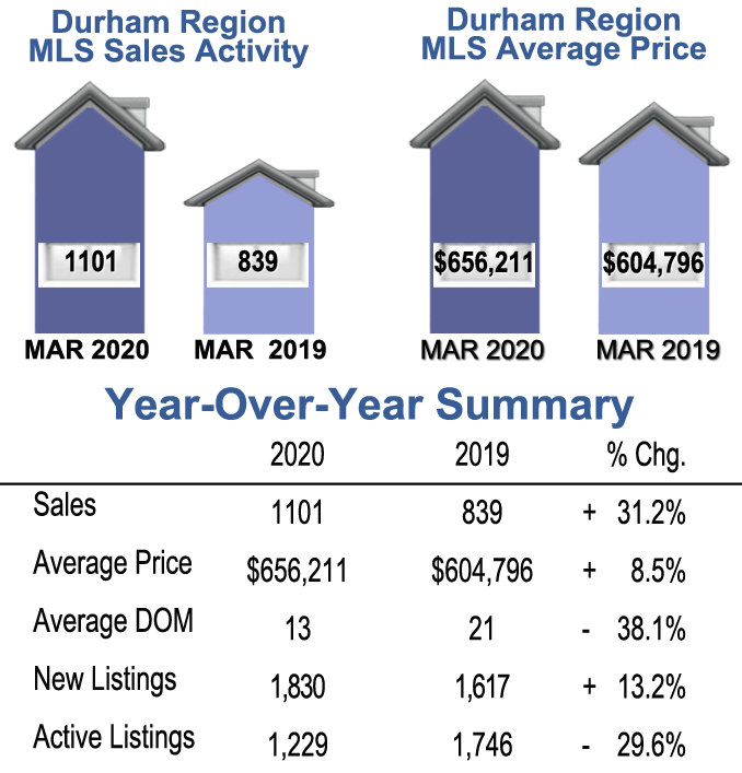 In Durham Region, number of House sales are up by 31.2% and Average Sale prices are up by 8.5% over March 2019.