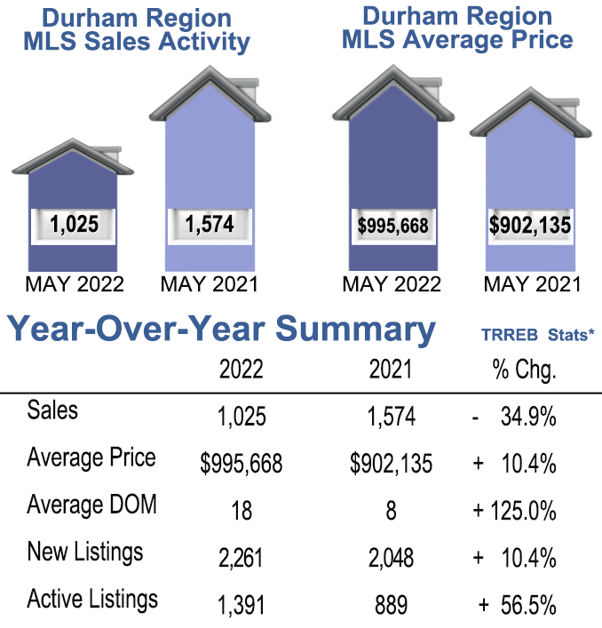 May 2022- Durham Region Home Sales, Year over Year Comparison