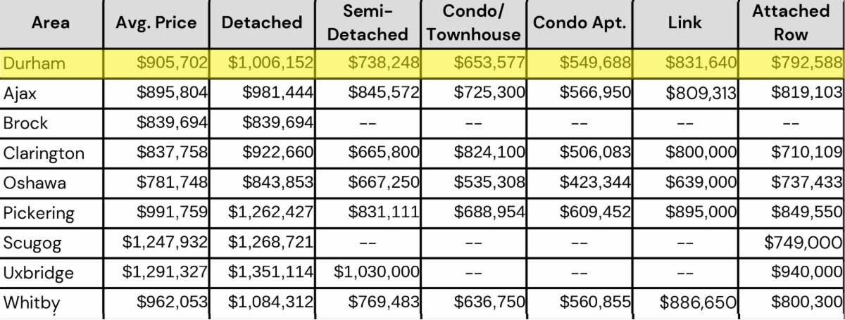 May 2025- Durham Region All Home Types Sales Stats- Average Price
