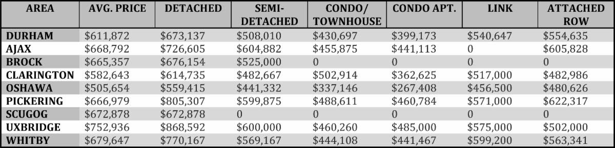 NOVEMBER - Durham Region Homes Sales Stats- Average Prices