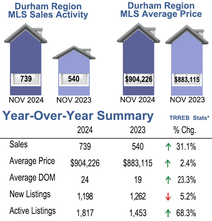 November 2024 Durham Region Sales Stats, Year Over Year Summary