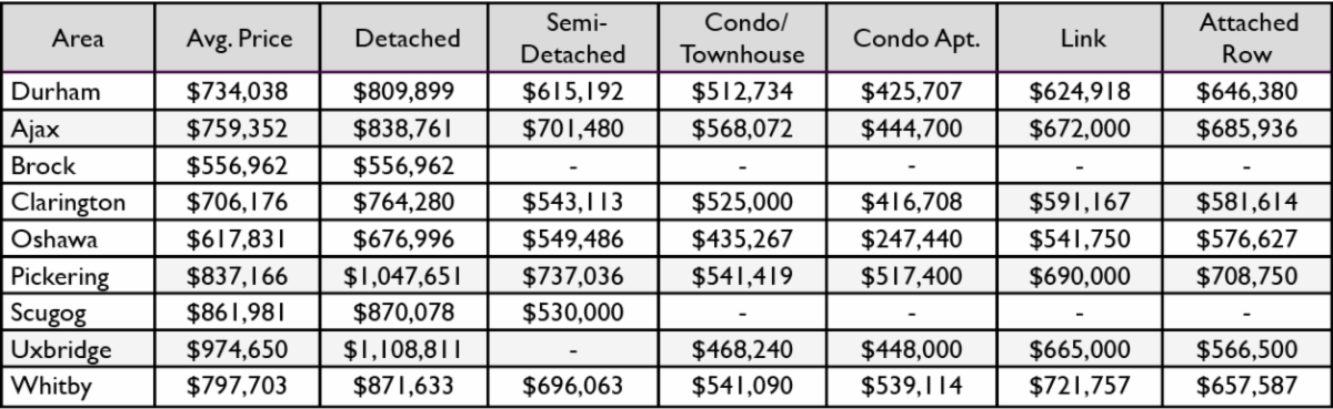 SEPTEMBER 2020 Durham Region Home Sales Stats- Average Price