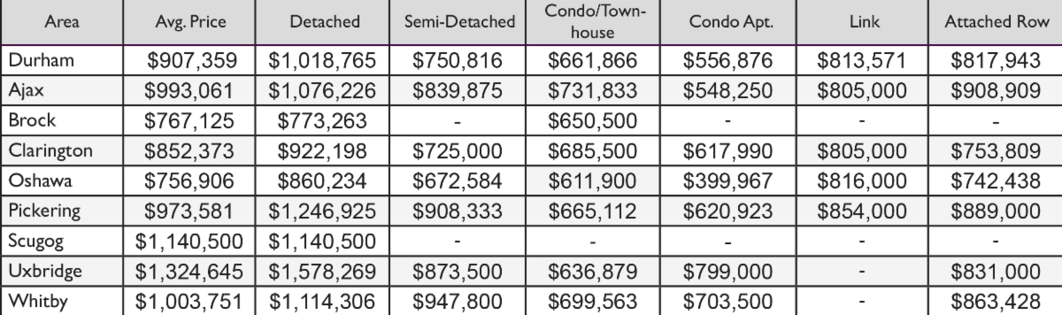September 2023- Durham Region All Home Types Sales Stats- Average Price