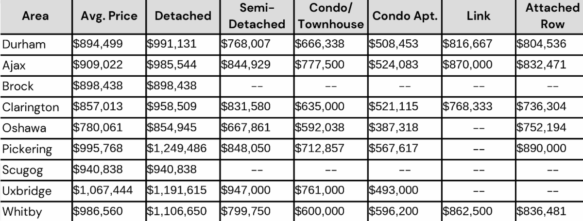 September 2024- Durham Region All Home Types Sales Stats- Average Price